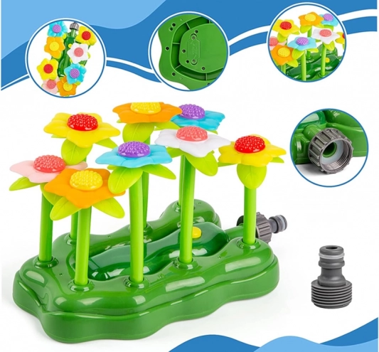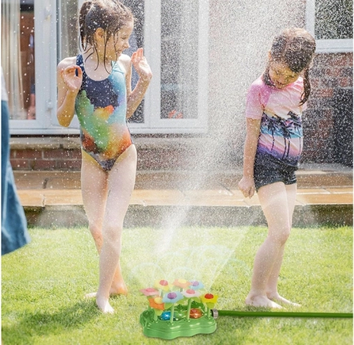 Šareni cvjetovi se pri protoku vode njišu i raspršuju vodu na sve strane – idealno za ljetnu igru na travnjaku.