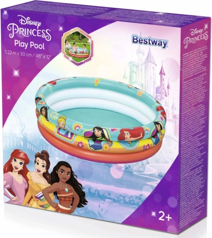 Stvorite djeci njihov vlastiti kraljevski vodeni kutak. Šareni bazen Bestway s princezama iz DISNEY-a donosi sigurnu i udobnu igru zahvaljujući napuhavajućem dnu i trima prstenovima koji zadržavaju oblik i nakon dugog ljetnog brčkanja. Idealan je za manje vrtove, dvorišta i terase.