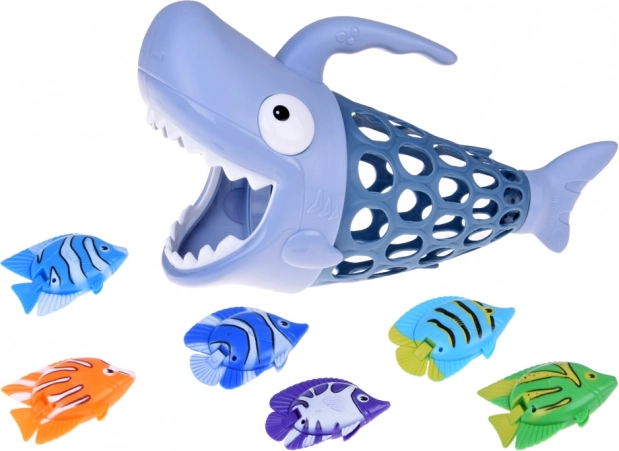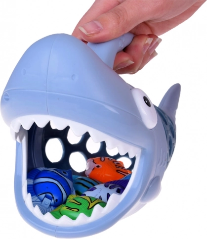 Košarica u obliku morskog psa za hvatanje ribica pretvara svako kupanje u uzbudljivu morsku pustolovinu. Zahvaljujući laganoj konstrukciji i velikom otvoru u obliku ralja, zahvaćanje ribica je lako i zabavno. Šest šarenih ribica potiče na ponovljenu igru i podupire koncentraciju.