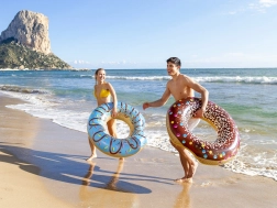 Ovaj stilski kolut u obliku zagrizenog donuta ističe se živim bojama i razigranim izgledom. Zahvaljujući promjeru od 107 cm pogodan je za odrasle i stariju djecu te pruža odličnu potporu pri odmoru na površini vode.
