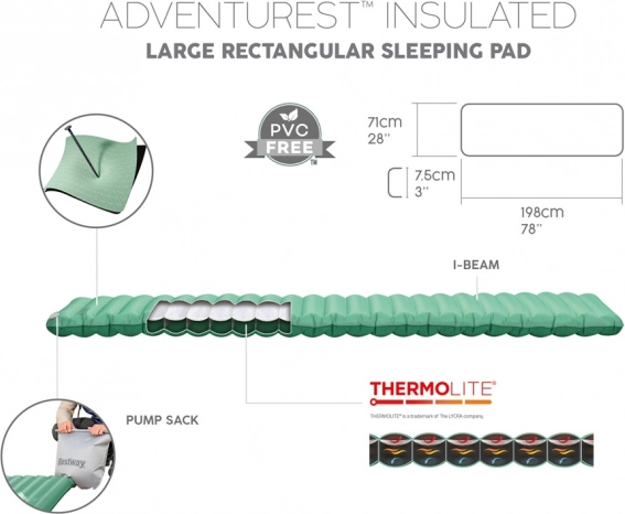 Nafukovajući prostirka Bestway AdventuRest je savršen pratitelj za vaše outdoor avanture. Zahvaljujući patentiranom sustavu AirCinch™, uživat ćete u jednostavnom i brzom napuhavanju koje ne zahtijeva dodatne alate. Dovoljno je pritisnuti rukama i prostirka se napuni zrakom.