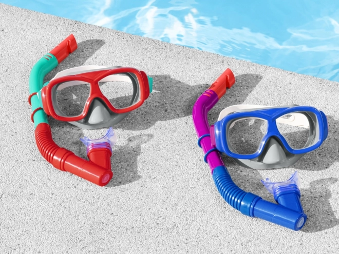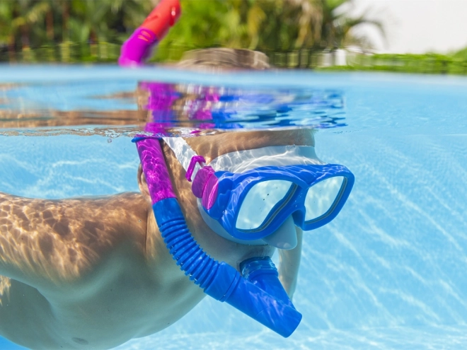 S ovim laganim i izdržljivim setom djeca će uživati u satima zabave u bazenu, jezeru i na moru. Maska se zahvaljujući podesivom remenu i silikonskim brtvama lako prilagođava obliku lica i pruža čist pogled zahvaljujući polikarbonatnim lećama s UV zaštitom. Disalica je opremljena mekanim silikonskim usnikom za prirodno disanje i zaštitom od prskanja na gornjem dijelu.