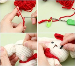 Izradite mekanog zečića s bijelom, crvenom i smeđom pređom – idealan dar i ukras za dječju sobu.