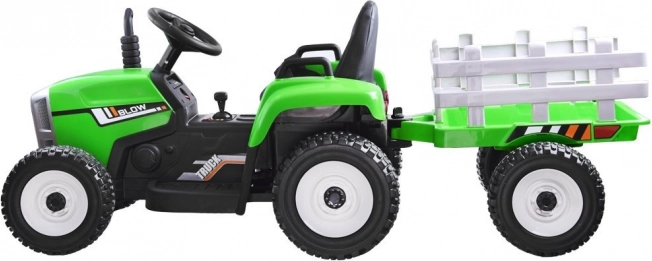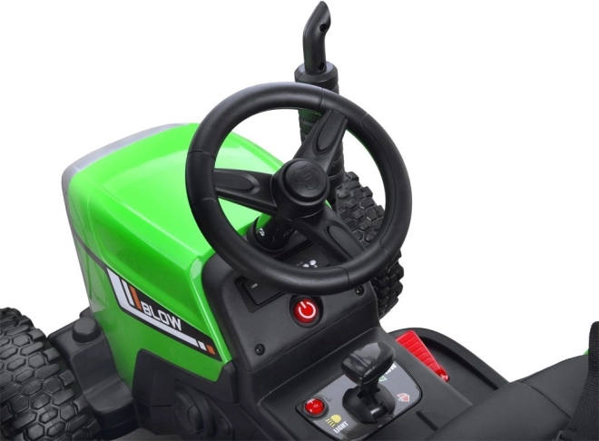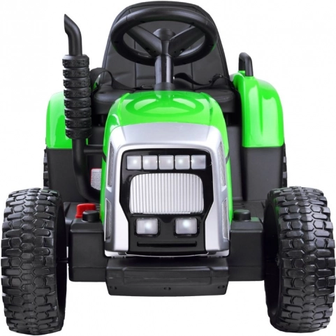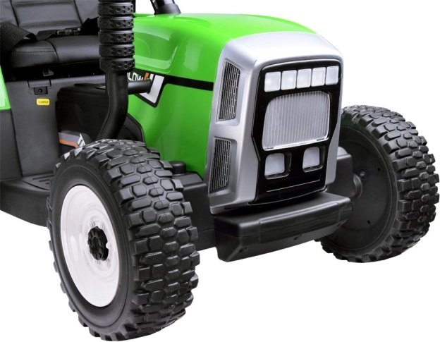 Električni traktor s prikolicom i daljinskim upravljanjem za male vozače nudi puno zabave na otvorenom i u zatvorenom. Ima postupan start, udobno sjedalo od eko kože, funkcionalne svjetlosne i zvučne efekte te glazbeni panel. Dva snažna motora i akumulator omogućuju vožnju i po zahtjevnijem terenu, a prikolica je idealna za prijevoz igračaka.