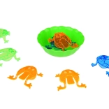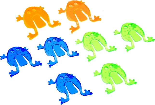 Šarene plastične žabice lako ćete izbaciti prstom i poslati ravno u posudu. Idealno za brza natjecanja i vježbanje spretnosti.