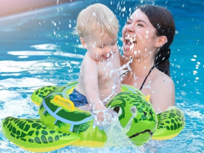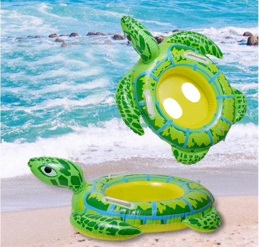 Preslatki napuhujući plivaći kolut u obliku kornjače, duljine 90 cm, idealan je za prvo upoznavanje s vodom i učenje plivanja.