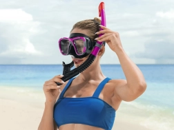 Sada Bestway Hydro Pro Galapagos™ namijenjena je ljubiteljima podvodnih izleta. Maska je prikladna za djecu od 14 godina i odrasle. Univerzalna maska s podesivim remenom lako se prilagođava glavi korisnika. Silikonski usnik s cjevčicom ima integrirani ventil za odzračivanje za lako uklanjanje vode i osigurava ugodno disanje tijekom plivanja. Maska s lećama od očvrslog stakla pruža jasan pogled pod vodom.