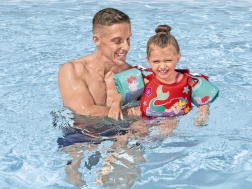 Prsluk je ukrašen motivima Male sirene, koji privlače svako dijete i čine plivanje zabavnom aktivnošću.