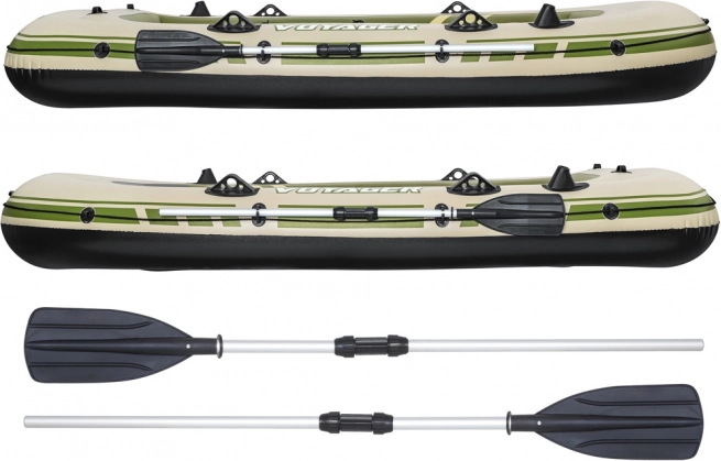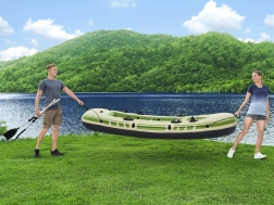 Čamac je opremljen naduvavajućim jastučićima na sjedalima i na napuhavanje podom, koji pridonose udobnosti vašeg putovanja. Nakon završetka avanture, lako ga možete smotati i pohraniti u izdržljivu torbu. Njegova maksimalna nosivost je do 360 kg, što osigurava sigurnost za sve putnike.