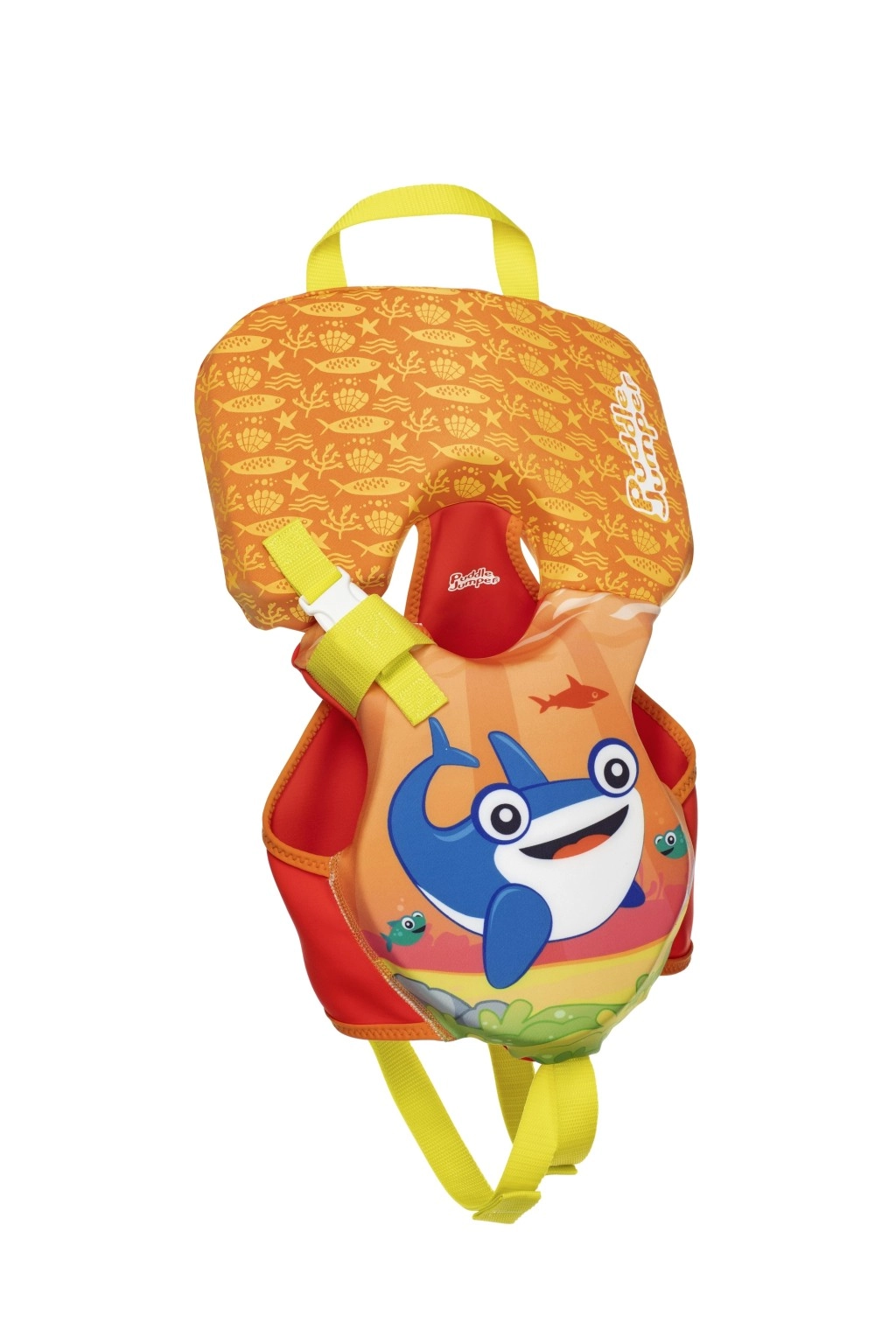 Lagan i udoban dječji plivački prsluk Puddle Jumper s razigranom grafikom morskog psa idealan je za najmlađe do 14 kg. Nudi sigurnu plutajuću potporu, mekane pjenaste umetke i veliki oslonac za glavu koji pomaže držati glavicu iznad vode. Zahvaljujući podesivim remenima, kopčama za brzo otpuštanje i spasilačkoj ručki pruža sigurnost i udobnost pri igri u vodi.
