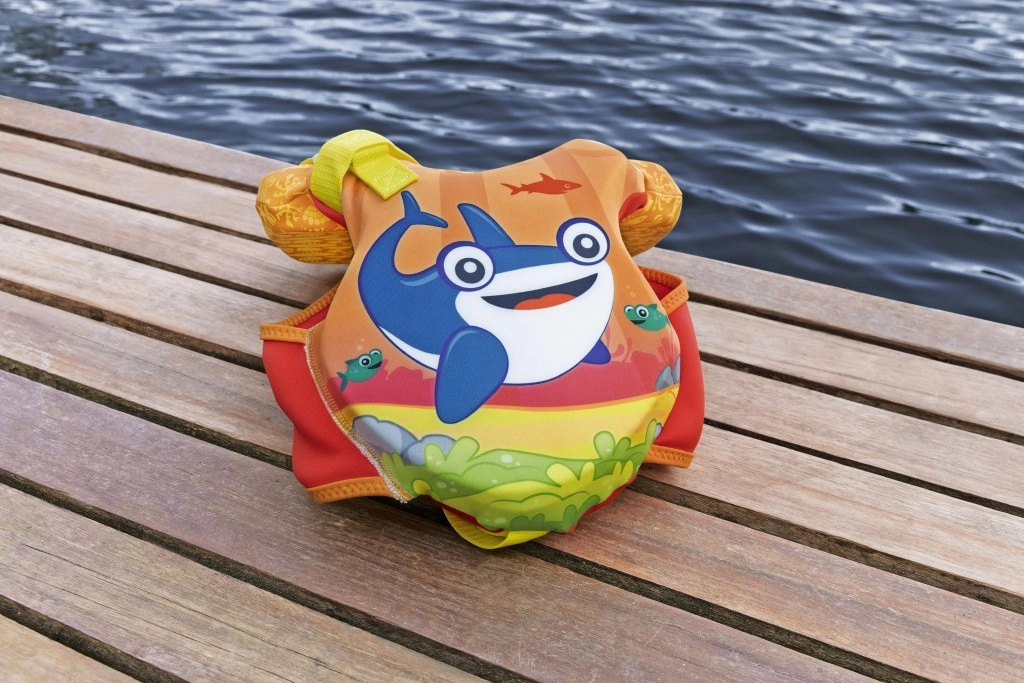 - Izvrsna vidljivost: jarke narančasto‑žute boje i veseli morski motivi