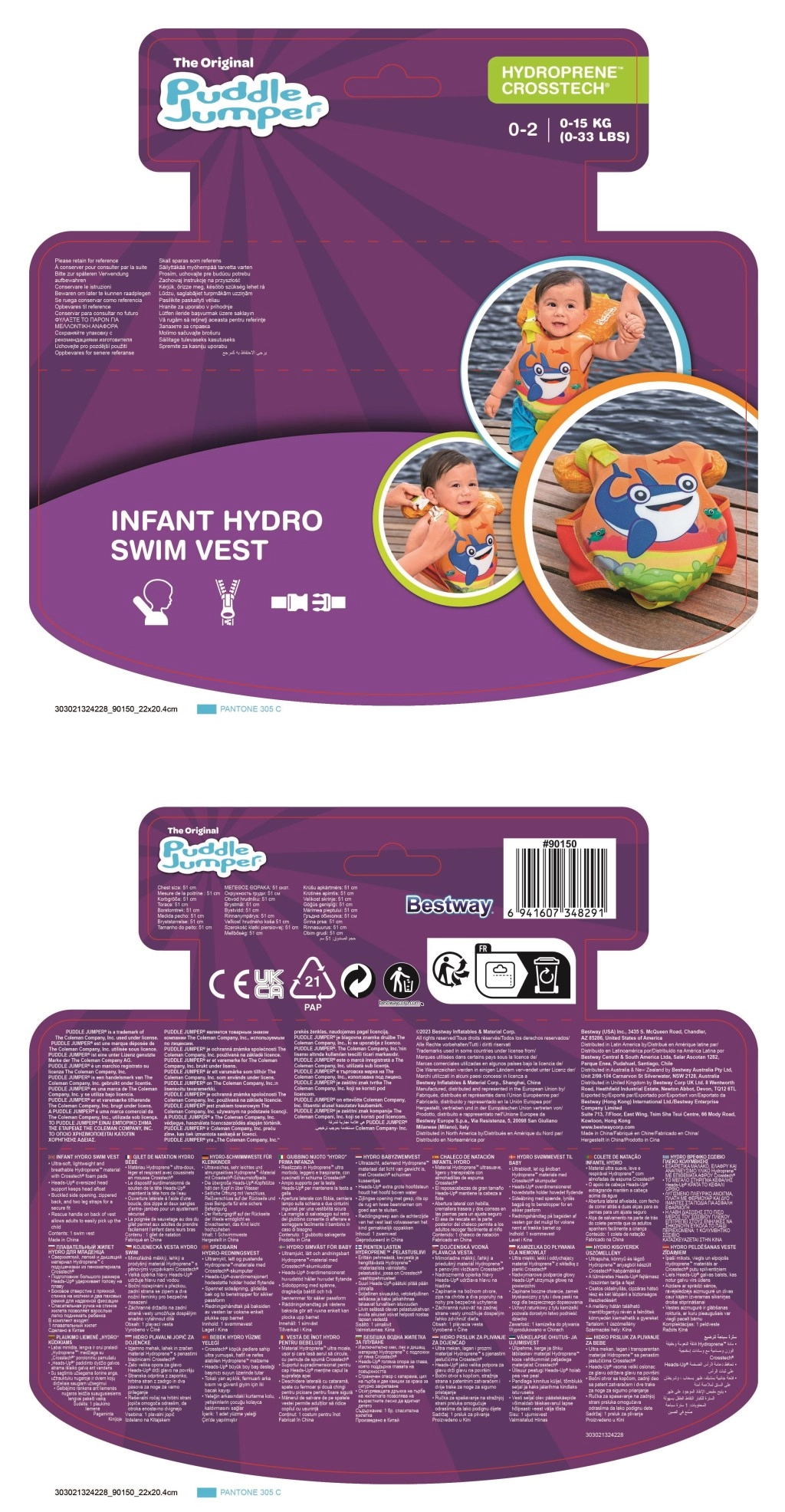 Ovaj dojenački plivački prsluk Puddle Jumper dizajniran je za maksimalnu udobnost i mir roditelja. Mekani, prozračni materijal i pjenasta konstrukcija osiguravaju ugodno nošenje, dok kontrastne, upadljive boje povećavaju vidljivost djeteta uz vodu.