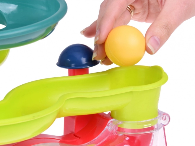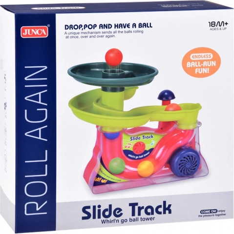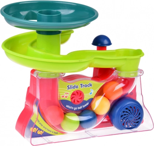 Nakon vađenja i punjenja akumulatora, kliknite na crvenu špicu i gledajte kako kuglice počinju vrtjeti u vrtlogu zabave. Djeca mogu vježbati svoje motoričke vještine hvatanjem i ponovnim ubacivanjem kuglica u tunel. Igračka je izrađena od plastike i ima atraktivan šareni dizajn, koji uči djecu osnovnim fizikalnim principima.