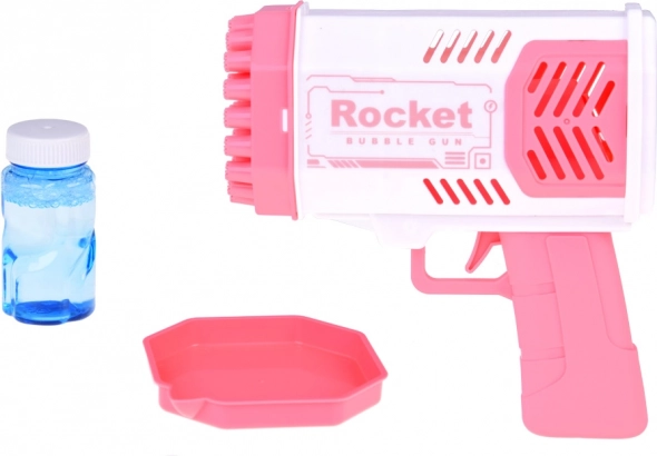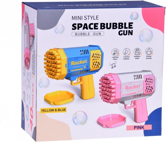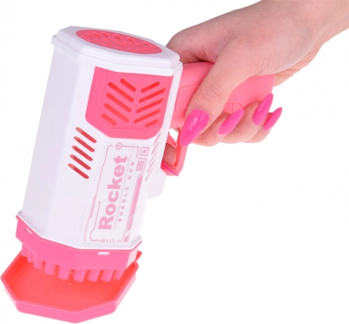 Ovaj jedinstveni pištolj za mjehuriće ne zahtijeva nikakav ugrađeni spremnik za tekućinu. Kako stvoriti prekrasne duge mjehuriće? Ulijte malu količinu priložene tekućine u ružičastu posudicu i umočite u nju prednji dio pištolja. Zatim ciljajte i pritisnite okidač. Pred vama će se pojaviti nevjerojatan prikaz - iz 40 otvora izletavaju okrugli, blistavi oblici puni boja koji će oduševiti svakog gledatelja!