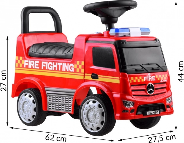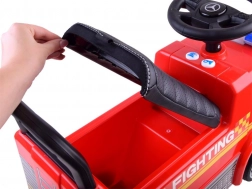 Osigurajte svom djetetu zabavu i sigurnost s ovom licenciranom guralicom Mercedes u obliku vatrogasnog vozila. Izrađeno od visokokvalitetne plastike, nudi izvanrednu izdržljivost i boje. Zahvaljujući udobnom sjedalu s naslonom, vožnja nije samo udobna nego i sigurna. Blokirni mehanizam sprječava prevrtanje prema natrag.