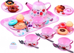 Pladanj, čajnik, šalice s tanjurićima, žličice i izbor deserata – sve što djeci treba za čajanku za lutke i prijatelje te za duge sate kreativne igre.