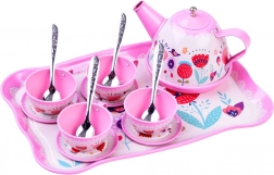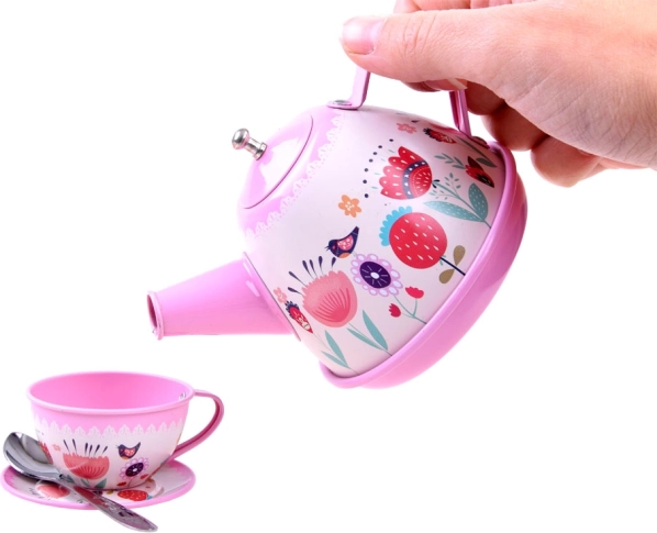 Set je kao stvoren za male domaćine koji žele poslužiti čaj lutkama i plišancima. Pastelne boje i slatki cvjetni motivi djeluju čarobno, dok metalna konstrukcija osigurava dug vijek trajanja i pri svakodnevnoj igri.