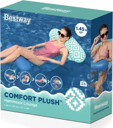 Uživajte u bezbrižnom opuštanju na vodi s napuhujućom hamačkom Bestway Comfort Plush. Baršunasta površina je mekana na dodir i ne pregrijava se na suncu, dok prozračna mrežica CoolDown ugodno hladi. Zahvaljujući ergonomskom naslonu za glavu i osloncu za noge, 3 zračne komore i nosivost od 90 kg čine je idealnom za dugačko izležavanje u bazenu i na moru. Nakon ispuhivanja kompaktna je za lako pakiranje na put.