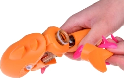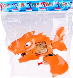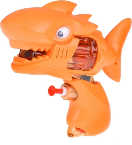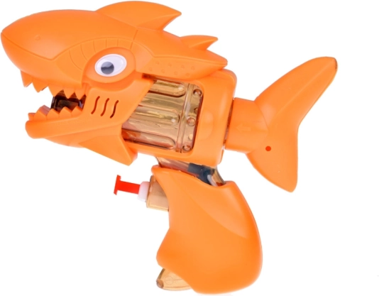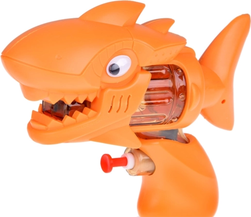 Ovaj kompaktan vodeni pištolj u obliku narančastog morskog psa izrađen je od glatke, na dodir ugodne plastike i idealan je za ljetne radosti. Djeca će cijeniti razigrani izgled s perajama, zubićima i izraženim okom koje se pri kretanju veselo njiše. Zahvaljujući prozirnom spremniku mali strijelci uvijek imaju pregled nad preostalom vodom.