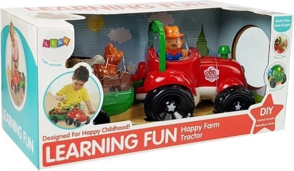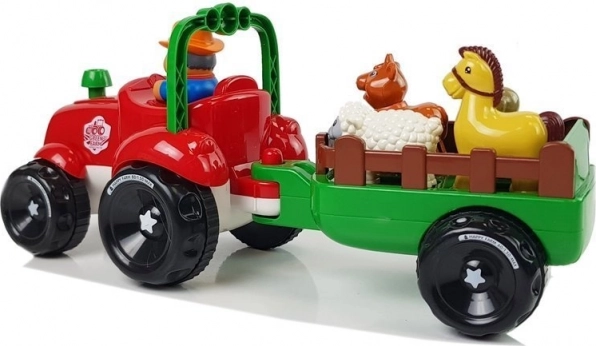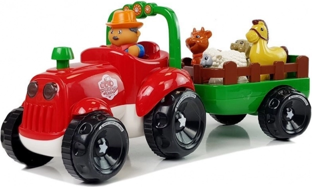 Ovaj šareni traktor s odvojivom prikolicom donosi djeci radost otkrivanja života na farmi. Svjetla u reflektorima i realistični zvukovi vožnje te trube daju igri uvjerljivost. Jednostavnim pritiskom na dimnjak traktor kreće naprijed, dok prikolica prevozi životinje na njihovo odredište.