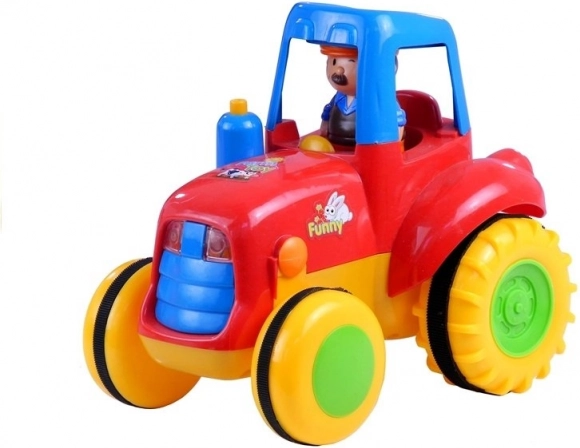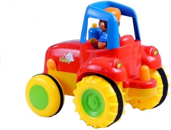 Igračka je izrađena od kvalitetne plastike, čvrsta, izdržljiva i sigurna za svakodnevnu igru. Pogon traktora motivira djecu na kretanje – uče puzati ili napraviti prve korake dok „love” vozilo. Svjetla i zvukovi igri dodaju dozu realističnosti i podupiru razvoj osjetila.