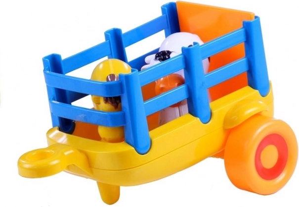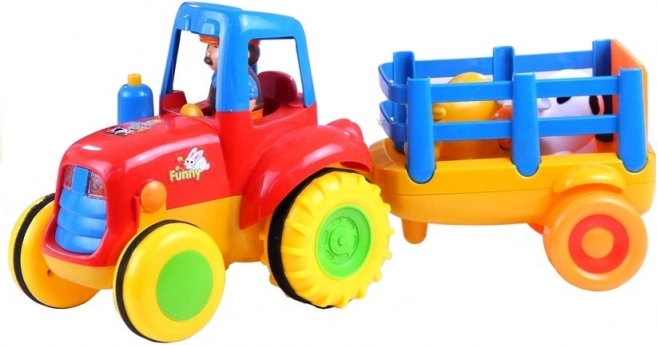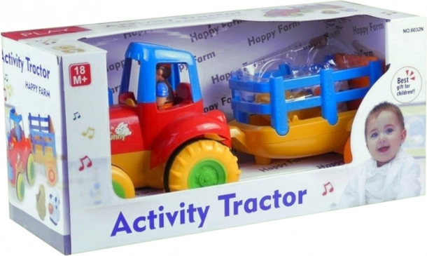 Veseli dječji traktor s prikolicom i životinjama razveselit će svakog malog farmera. Igračka nudi svjetlosne i zvučne efekte, pogonsko kretanje naprijed te sigurno i izdržljivo izvedenje. U kompletu je prikolica s ogradicom i dvije figurice – kravica i konjić. Odlično potiče razvoj fine motorike, koordinacije i mašte djece od 18 mjeseci.