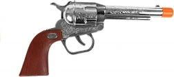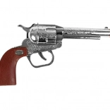 Klasičan izgled revolvera s detaljnom izradom i udobno nošenje zahvaljujući futroli s remenom. Revolver je dug 19 cm.