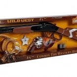 Uđite u svijet Divljeg zapada s kompletnim dječjim kaubojskim setom. Sadrži pušku sa zvukom pucnjeva, revolver, šerifovu zvijezdu, futrolu s remenom i ostrugе. Idealan za maškare, karneval i maštovitu igru kod kuće. Puška se napaja s 2× AA 1,5 V (baterije nisu uključene).
