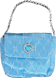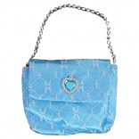 Stilska plava torbica s elegantnim srebrnim uzorkom i srcolikim ukrasom. Odlična i za neformalne i za formalne prigode.
