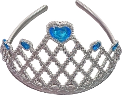 Prekrasna kruna s plavim srcolikim ukrasima, obogaćena složenim mrežastim detaljima. Prikladna za kostimske namjene.
