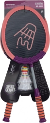 Set od 2 badmintonskih reketa, idealan za ljubitelje ovog sporta. Reketi su izrađeni od kvalitetne plastike u elegantnoj ružičastoj boji s ljubičastim detaljima, što im daje dodatnu atraktivnost. Drška reketa obložena je mekom pjenom koja osigurava udobno i sigurno držanje tijekom igre, a ispunu reketa čini materijal koji jamči izvrsnu kvalitetu i izdržljivost.