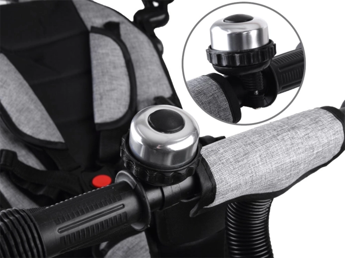Metalni zvonac za sigurno upozorenje okoline i udobne pjenaste ručke na vodilici olakšavaju roditeljima vođenje trokolidice u užurbanom okruženju.