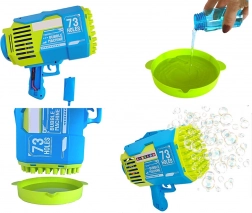Ovaj snažan pištolj za mjehuriće pretvara svaki trenutak u čarobni prizor. Dovoljno je uliti otopinu u posudu, uroniti glavu i pritisnuti gumb – deseci mlaznica istovremeno stvaraju stalan mlaz mjehurića. Idealno za rođendane, vjenčanja, roštilje i igre u vrtu.