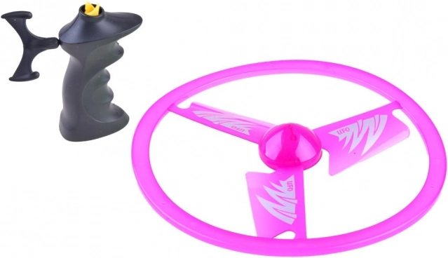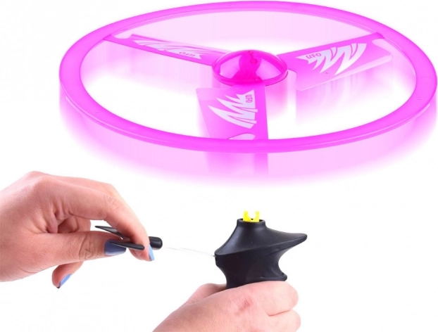 Upravljanje je jednostavno: postavite disk na ručku, povucite za uzicu i promatrajte kako se ružičasto “NLO” uzdiže. Odlično za razvoj koordinacijskih vještina, kretanja i zajedničke igre.