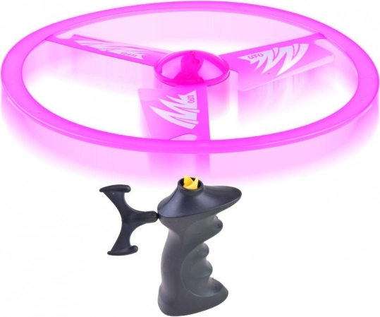 Ovaj zabavni leteći tanjur s praktičnim navijačem izbacuje disk visoko u zrak i pruža dinamičnu zabavu na otvorenom. Integrirane LED diode uz priložene baterije zasvijetlit će i stvoriti atraktivni svjetlosni trag, posebno u sumrak.