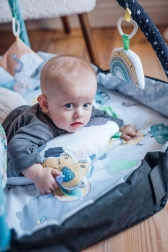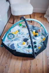 Igraća podloga MoMi Day&Night je proizvod 4 u 1: sklopiva igraća podloga, edukativna podloga, igraća dekica te suhi bazen s lopticama! Savršen je pratitelj za dječju igru!