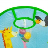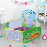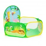 U pakiranju je 50 plastičnih loptica (Ø 6 cm) koje pretvaraju šator u zabavni suhi bazen. Ugrađeni koš za bacanje potiče kretanje, razvija koordinaciju i preciznost. Izdržljivo dno spremno je za igru u zatvorenom i na otvorenom.