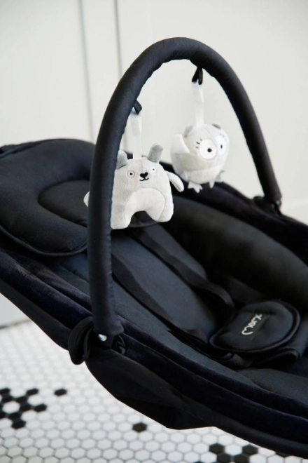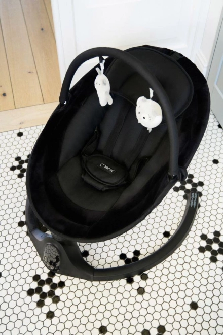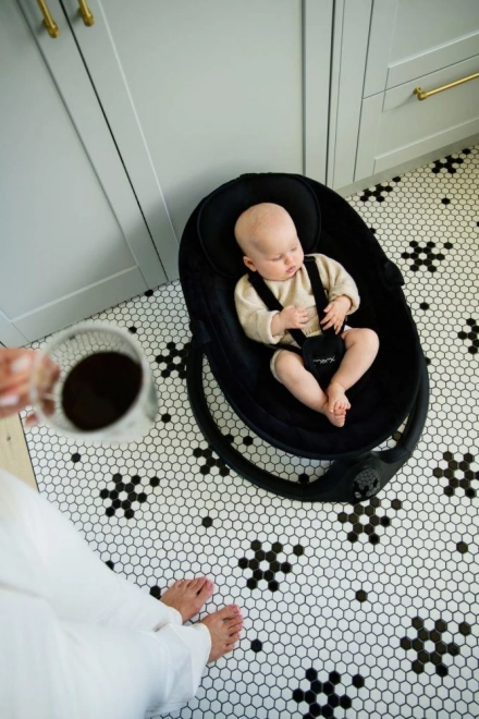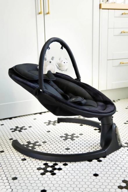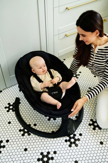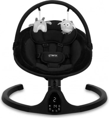 MoMi Kenani Onyx moderna je električna njihaljka za ugodno umirivanje i zabavu bebe od rođenja. Stabilna aluminijsko-čelična konstrukcija, mekani plišani presvlaka i jastučić za glavu pružaju udobnost, dok 5-točkasti pojasevi i protuklizne podloge brinu o sigurnosti. Zahvaljujući Bluetoothu lako ćete pustiti omiljene pjesme s telefona, a pregledni LCD zaslon i daljinsko upravljanje olakšavaju svakodnevnu upotrebu.