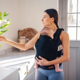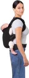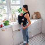 Praktična oprema uključuje odvojivu kapuljaču za zaštitu od vjetra ili sunca, meke navlake za kopče protiv pritiska, mali džep za sitnice i gumice na krajevima naramenica za uredno osiguranje. Hipoalergena, prozračna tkanina nježna je prema osjetljivoj koži djeteta i roditelja te osigurava cjelodnevnu udobnost.