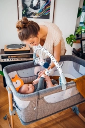 U početnom razdoblju života djetetu su potrebne igračke na koje može izravno usmjeriti pogled. Zato se hrazdica s igračkama može postaviti na odgovarajuću udaljenost, cca 20–25 cm od djeteta. Hrazdica MoMi JOY ima podesiv kut nagiba, pa je možete prilagoditi potrebama djeteta.