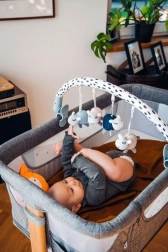 U tom je razdoblju važno da dijete ima igračke nadohvat ruke dok leži na trbuhu. Ovnici na hrazdici MoMi JOY potaknut će dijete na prve pokušaje hvatanja.