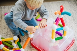 Sve je pohranjeno u izdržljivom spremniku. Crveni poklopac i dno služe kao podložne ploče, pa se može graditi izravno na njima. Set je izvrstan izbor za obitelji i kolektive – za vrtiće ili dječje kutke.