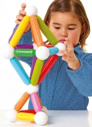 Štapići i kugle spajaju se jednim „klikom”. Djeca brzo grade tornjeve, mostove i kreativne 3D oblike bez nepotrebne frustracije.