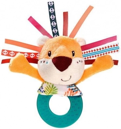 Zvečko je izrađeno od mekog pliša i dopunjeno veselim šarenim trakicama koje čine grivu, stimulira vizualna i taktilna osjetila.