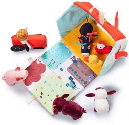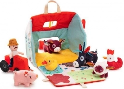 Ovaj tekstilni set svaki dan pretvara u pustolovinu na selu. Šarena kućica-štala rasklapa se u seoski tor s otiskom gredica, pašnjaka, jezerca i blatne lokve za praščića. Dio seta su bradati farmer Jeff, crveni traktor i životinjice: kravica Rosalie, praščić Simon, ovčica Yvon, patak Gaston, kokica Paulette i magarčić Ignace. Sve je izrađeno od mekih materijala s različitim strukturama za osjetilnu stimulaciju.
