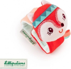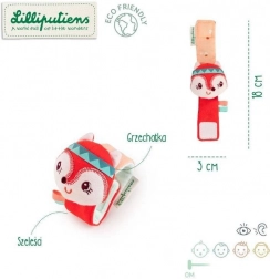 Mekana zvečkica za zapešće LILLIPUTIENS s likom lisice Alice idealna je prva igračka za bebe od rođenja. Pričvršćivanje na čičak, ugodna pamučna tkanina i lagana izrada omogućuju udobno nošenje na ručici ili nožici. Igračka pri pokretu nježno zvecká i na dodir šuška, potiče sluh, vid i dodir te prirodno razvija finu motoriku.
