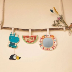 Zrcalo s drvenim okvirom i motivom lava idealno je za vizualnu stimulaciju i podršku istraživačkih vještina malih dječaka.