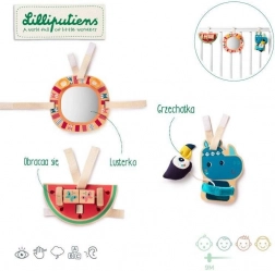 Ovaj prekrasan set od tri drvene viseće igračke iz kolekcije Nosorog Marius belgijskog brenda Lilliputiens impresionira svojom praktičnošću i kvalitetom. Svaka od igračaka izrađena je od prirodnog drva i nudi jedinstveno iskustvo za djecu stariju od devet mjeseci:
