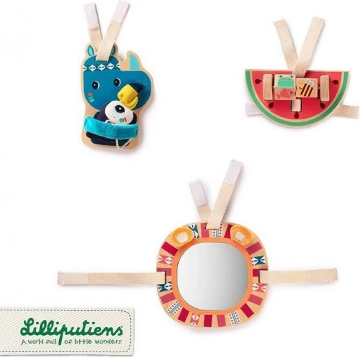 Svaka igračka ima praktični suhi zatvarač za jednostavno pričvršćivanje na kolica, autosjedalicu ili dječji krevetić. Osim toga, ove igračke pomažu u razvoju koordinacije ruku i očiju te osjetilne percepcije kroz dodir, vid i sluh.