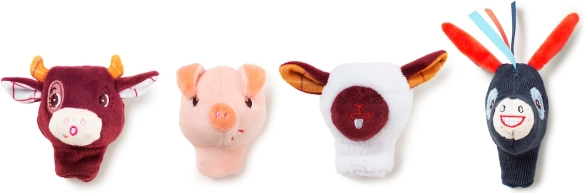 Zamislite sve te zabavne priče koje možete ispričati svojoj djeci uz pomoć ovih simpatičnih lutaka za prste. U kompletu su 4 životinje sa farme - kravica, svinjica, ovčica i magarac. Svaka lutka za prste ima svoj izražaj. Magarac Ignacije se smije, ovčica pokazuje jezik. Stavite lutke na prste i predstava može početi. Mala djeca radije će gledati predstavu, dok će se starija djeca već moći uključiti i sama izvesti neku priču. Ova igra potiče razvoj mašte i govora.